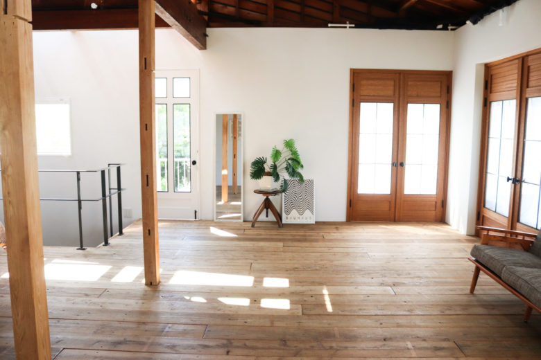 足場板のフローリングで温かみがあり、スタイリッシュでクールな1階と違ったバリエーションで撮影できます。